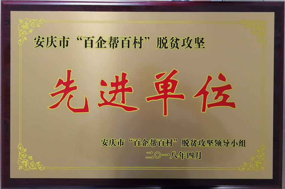 我司榮獲安慶市“百企幫百村”脫貧攻堅(jiān)先進(jìn)單位稱號