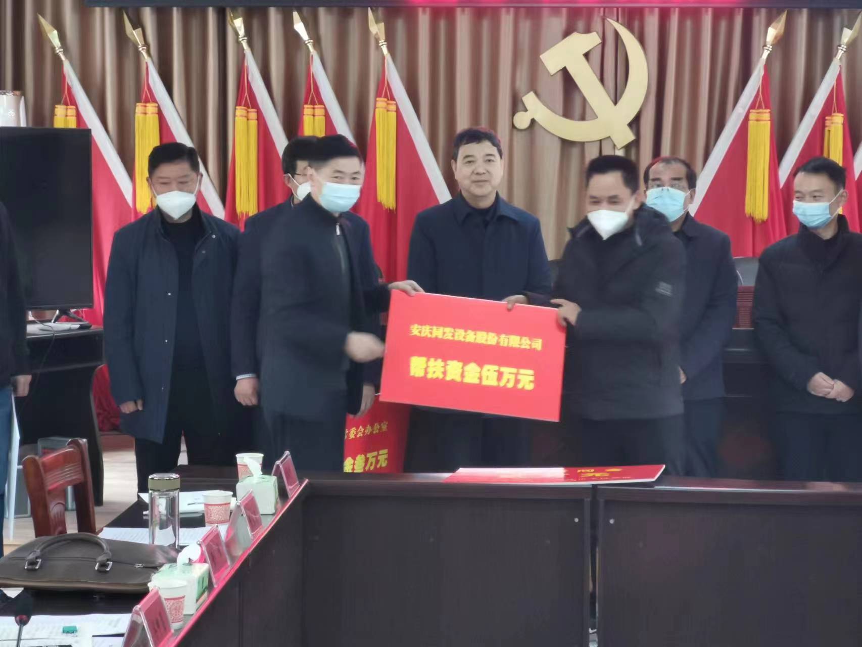 2023年1月5日,在安慶市人大常委會(huì)周東明主任的帶領(lǐng)下赴宿松縣趾鳳鄉(xiāng)吳河村扶貧慰問,我司總經(jīng)理焦祥靜同志陪同并向吳河村捐款5萬元。